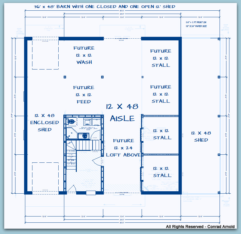 Detailed Footing, Detailed Post & Footing Layout, Detailed Floor Plan, Front Elevation, Rear Elevation, Left Elevation, Right Elevation. Elevations detail the outside dimensions and exterior finish materials.